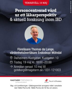Den 19 maj arrangerar Mag- och tarmföreningen i Göteborgsområdet, i samarbete med Tillots Pharma AB, en föreläsning för att …