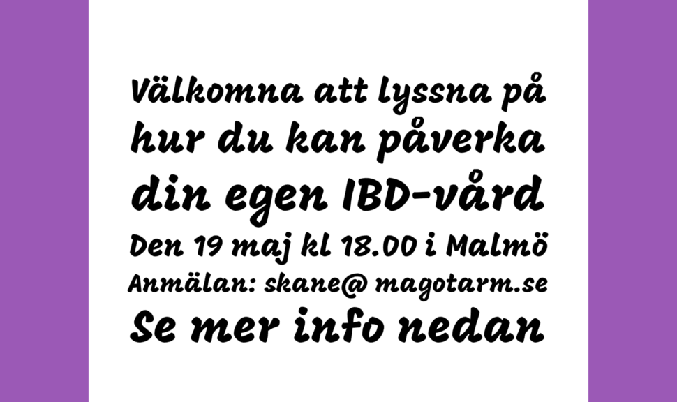 Föreläsning kring nytt arbetssätt av Lag IBD i Region Skåne! På IBD day den 19 maj kl 18.00 i Malmö